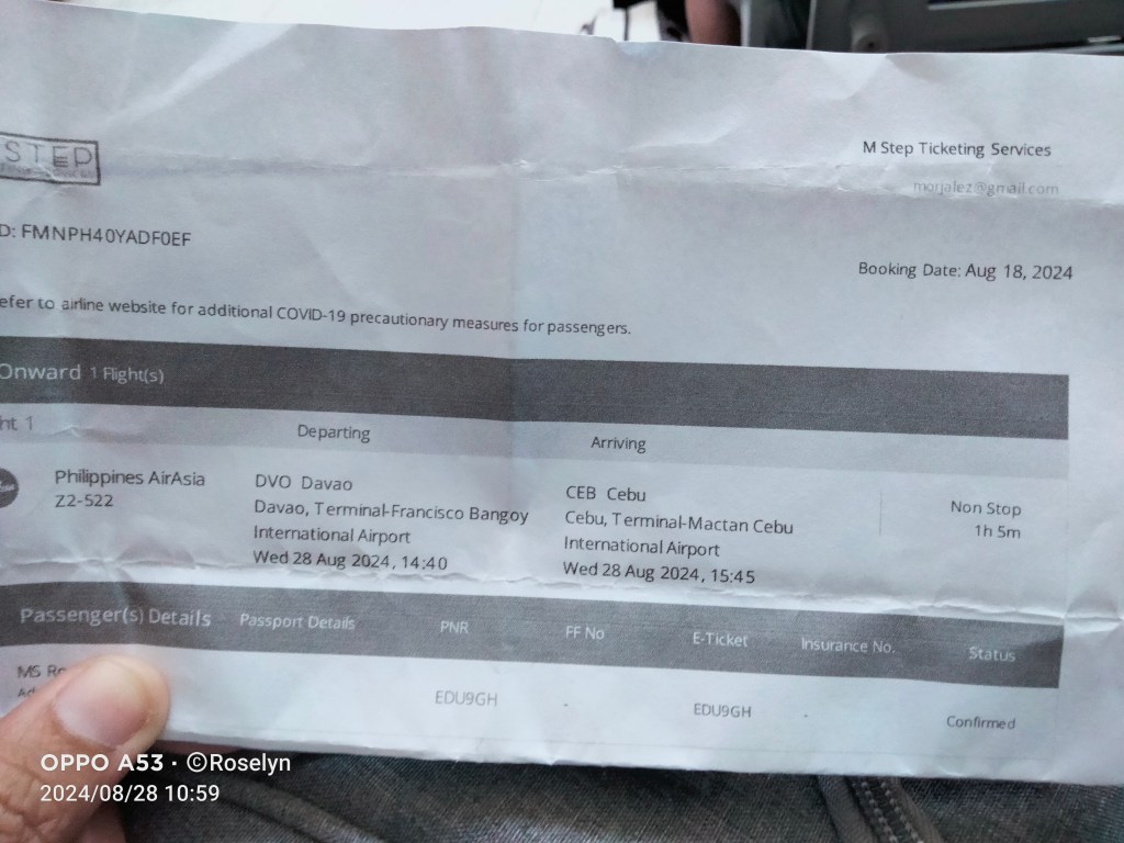 My phone was in flight mode and I used the time to take photos to calm myself down, just seeing the best of the flight and taking memories of it, eating doritos. Davao is really secured, upon arrival via Bus there’s a checkpoint. At the airport, there were lots of checking time too and weighing of stuffs. It was ended a really safe travel!